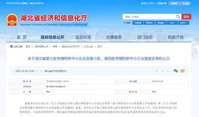 5月8日,湖北省經(jīng)濟(jì)和信息化廳公布了《關(guān)于湖北省第七批專精特新中小企業(yè)及第三批、第四批專精特新中小企業(yè)復(fù)核名單的公示》。經(jīng)嚴(yán)格篩選和綜合評(píng)審,金莊科技憑借在產(chǎn)品研發(fā)、技術(shù)創(chuàng)新以及業(yè)務(wù)發(fā)展等方面的卓越表現(xiàn),順利通過(guò)“湖北省第三批專精特新中小企業(yè)”復(fù)核認(rèn)證,標(biāo)志著企業(yè)在專業(yè)化發(fā)展道路上再獲權(quán)威認(rèn)可。